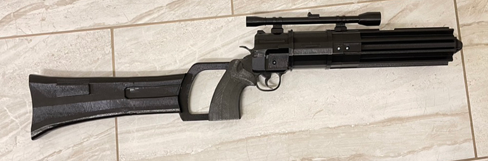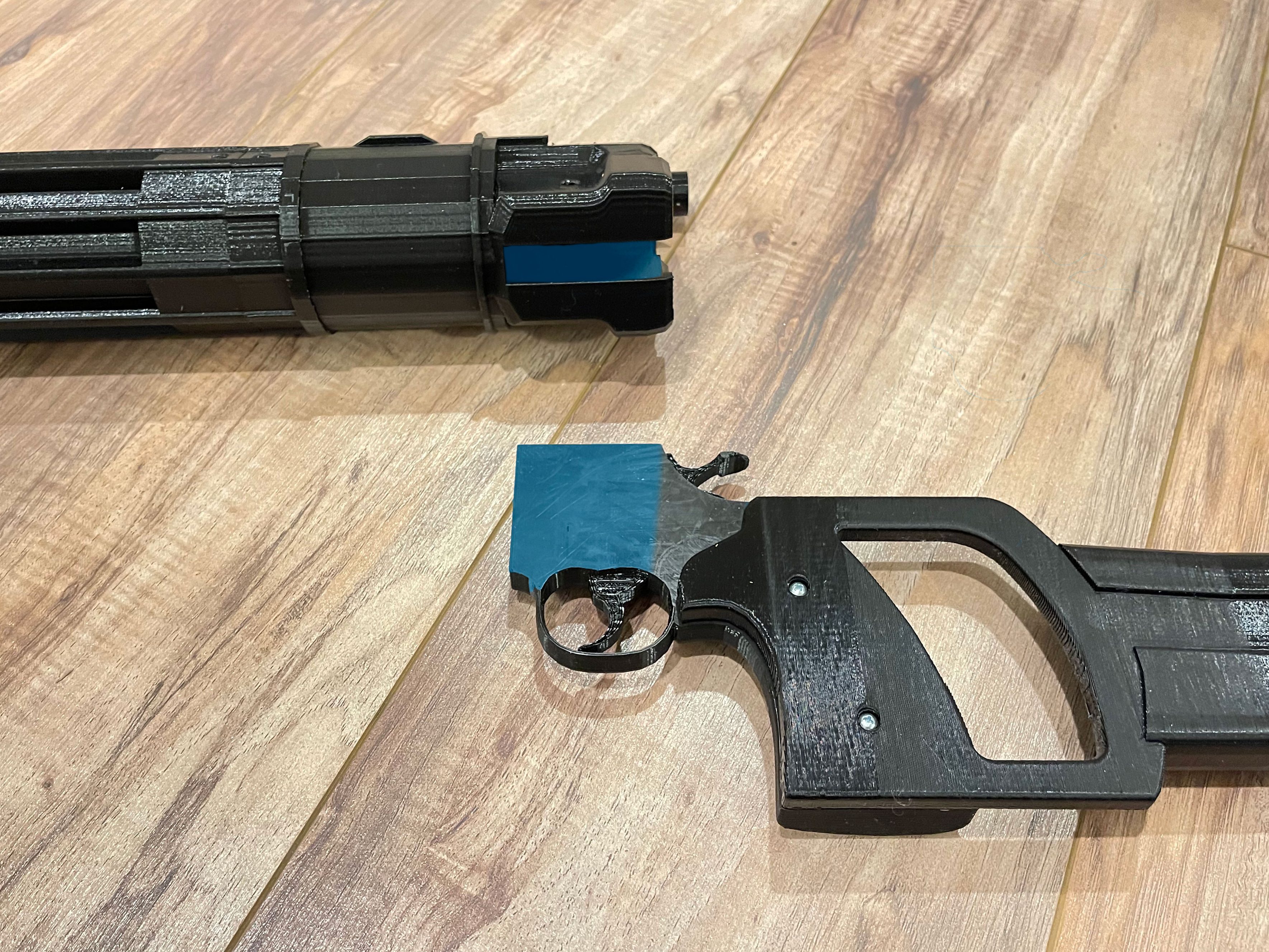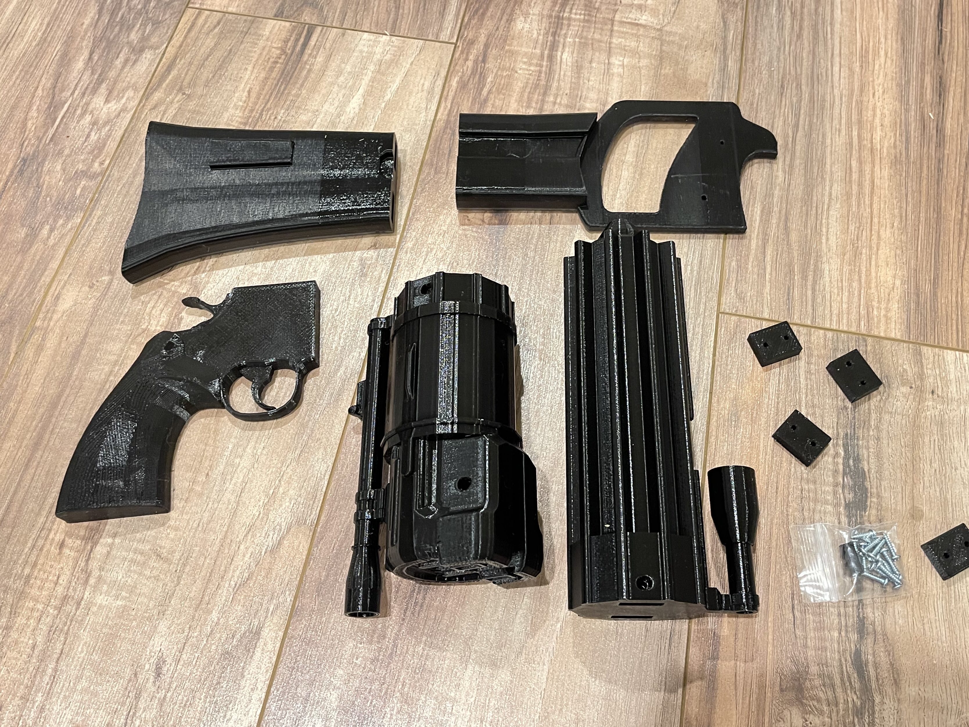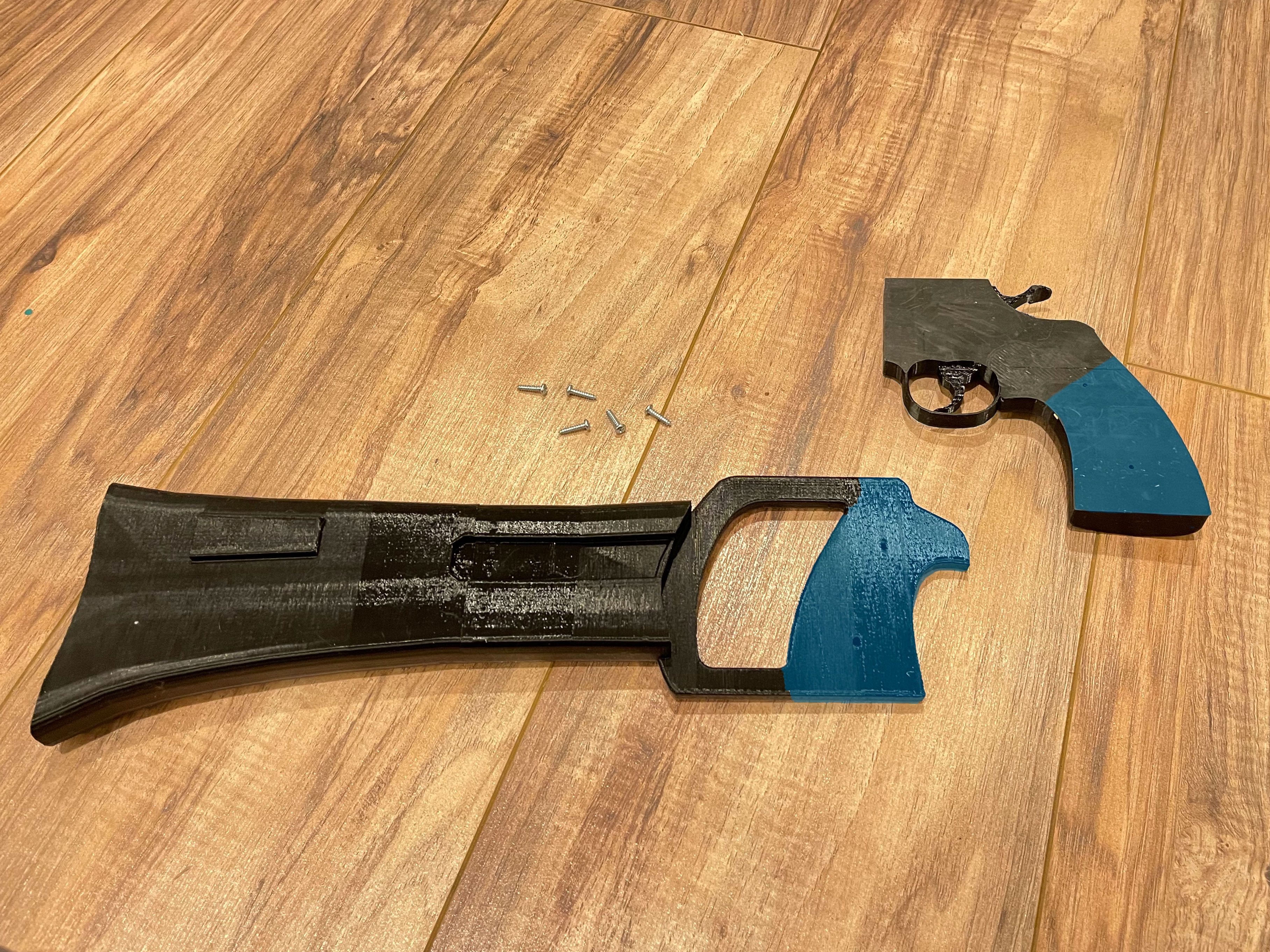 I used gunmetal spray paint for the above gun then finished it with lacquer. If you want to get technical you can brush on detail colors. I recommend Vallejo paint from amazon if you take that route.
