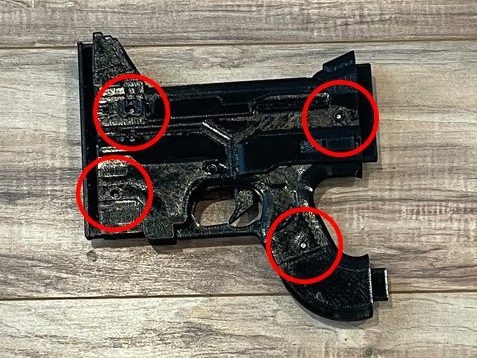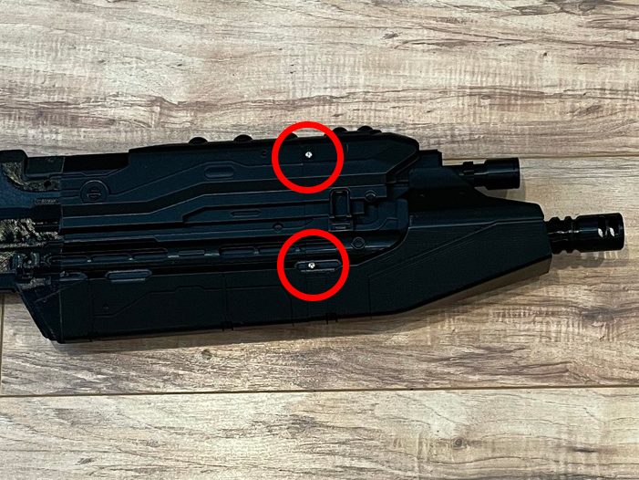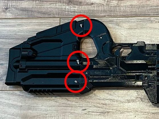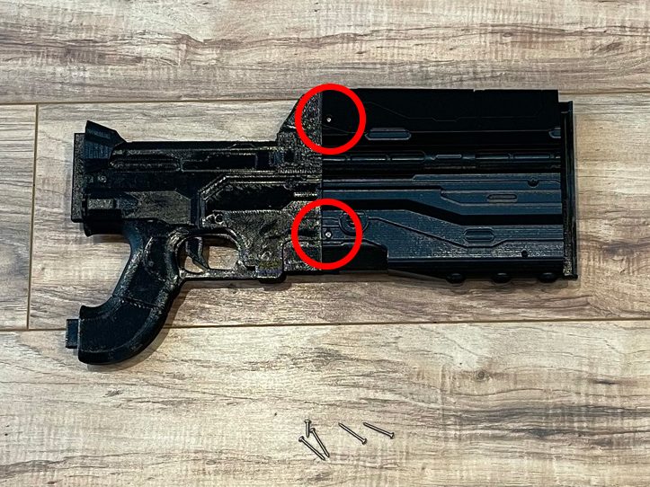 5. Attach the middle section of the gun to the main body using 2 1/2” screws.