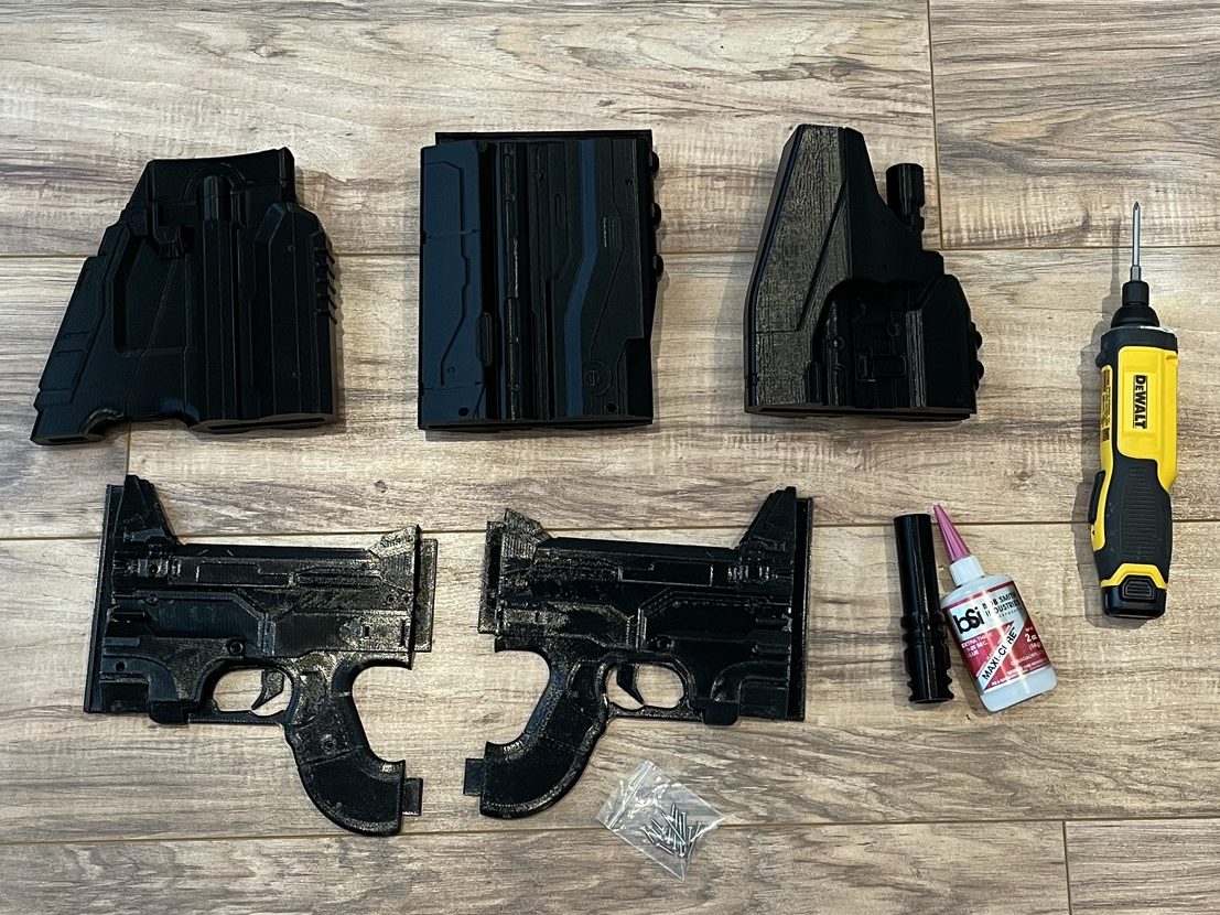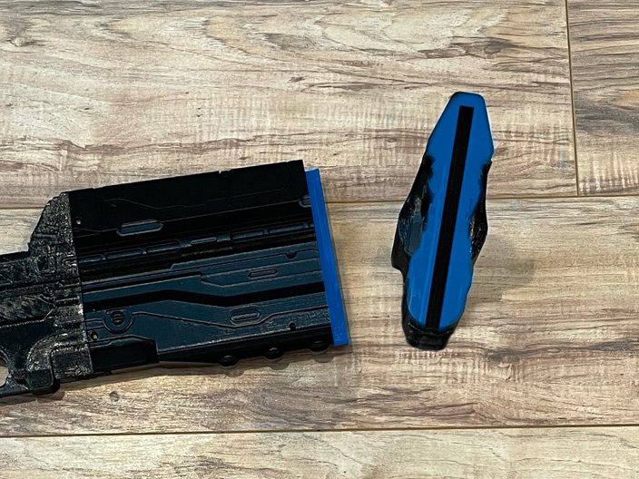 10. Apply glue to the handle and butt of the gun.