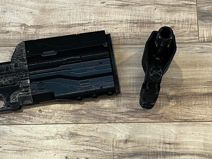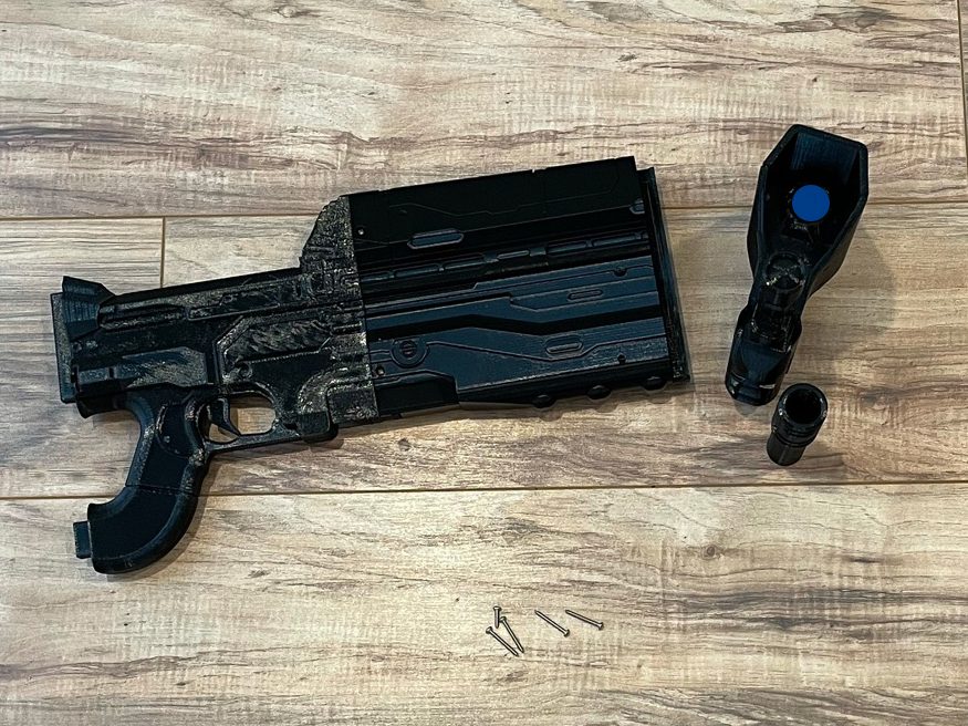 The gun is ready to be painted. I plan on putting together a video showing that process. But until that is finished, here is an example of how I painted the above model. You can fill the connecting parts with model putty but I didn’t bother with that. I also skipped the primer. I use Vallejo paint. I painted one color at a time on every surface of the gun. I let it dry and then moved on to the next color. I went over each color 2 to 3 times to help fix overlaps and missing spots. Let it fully dry before adding another layer. Once you are happy with the paint job finish it with a spray-on lacquer.
