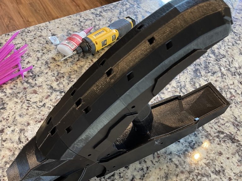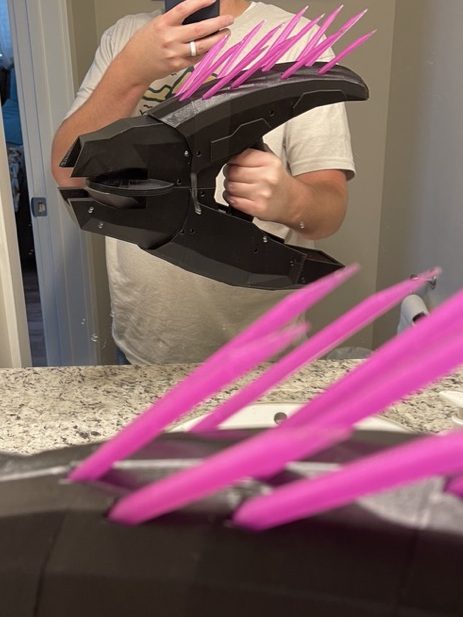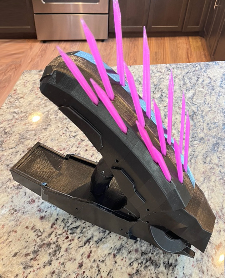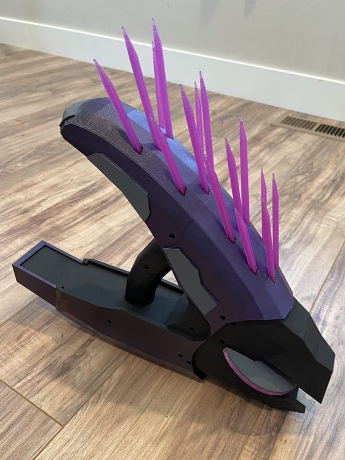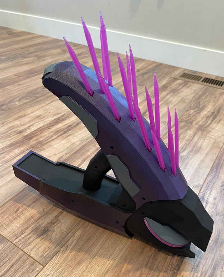 13. If you are planning on painting the gun its probably wise to do so now. I used purple spray paint then finished it off with Vallejo paint and brushes.