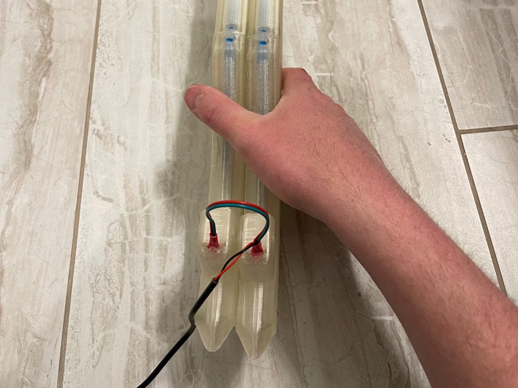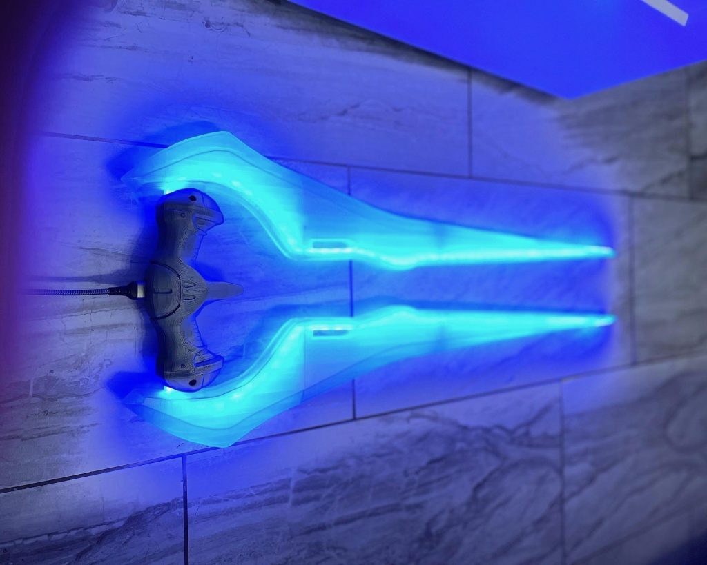 This sword is powered by an external battery pack that you can put in your pocket and plug into the sword. Here are the items you will need: