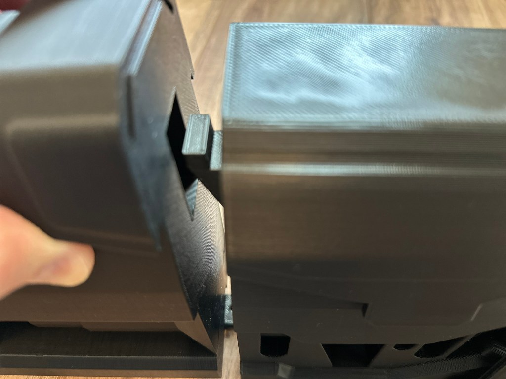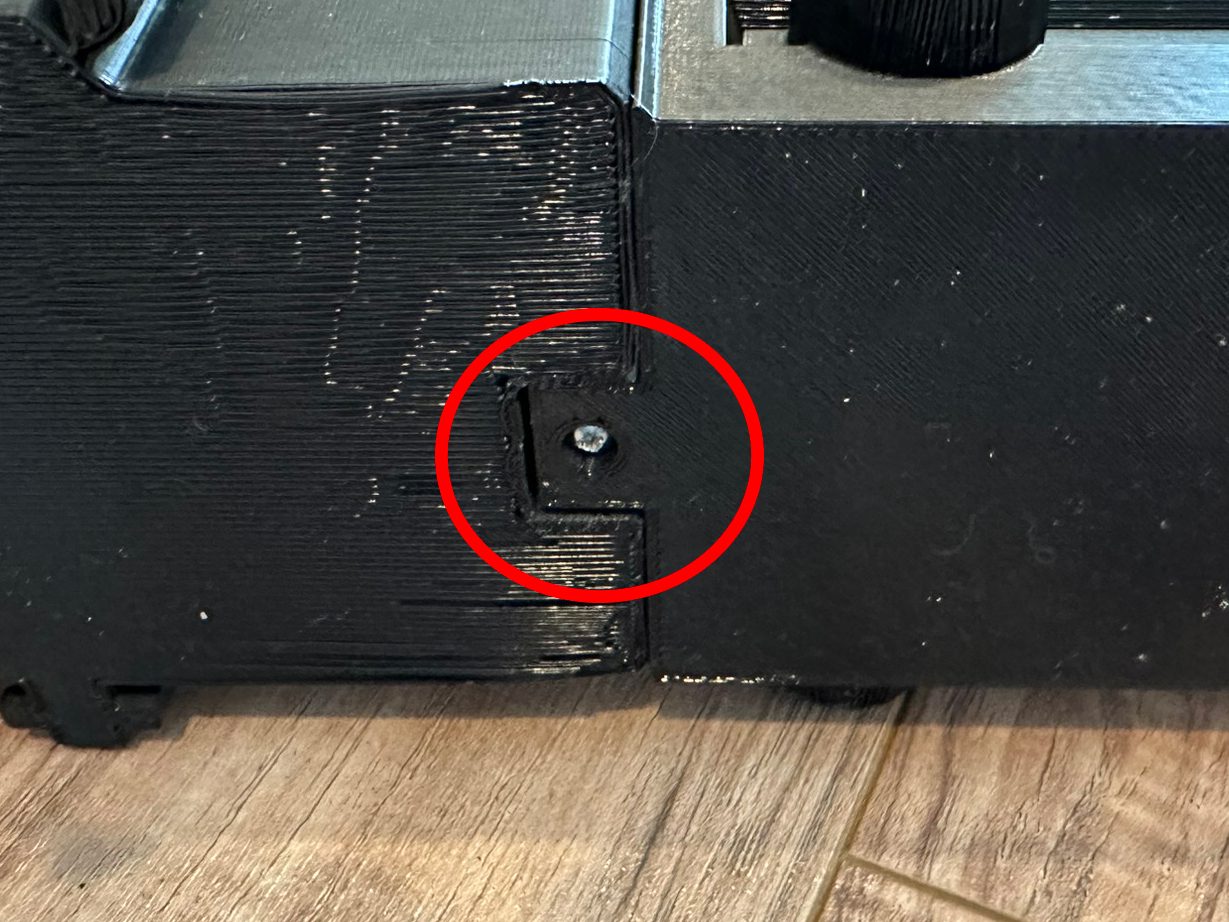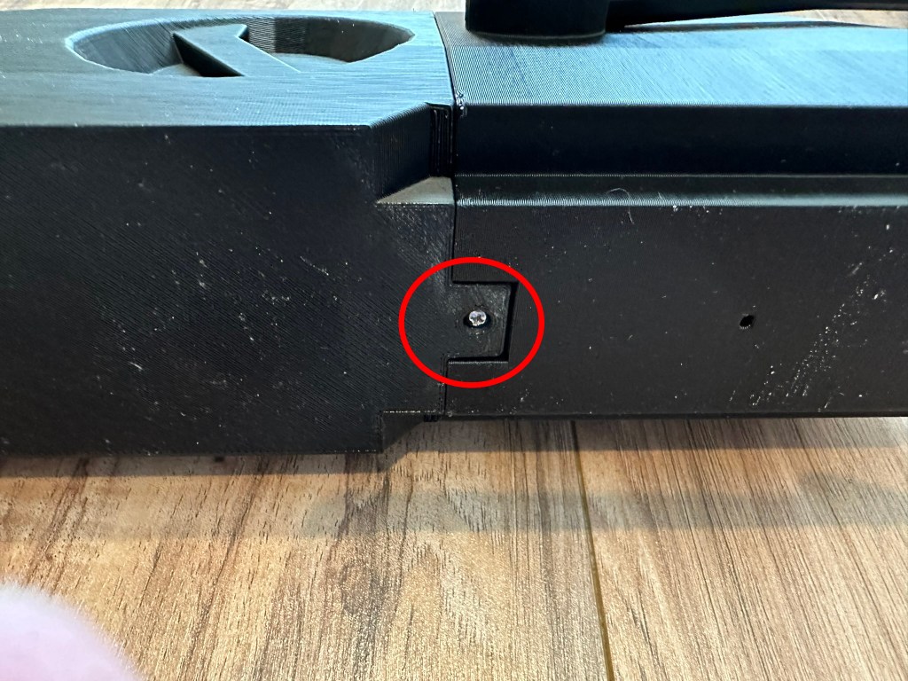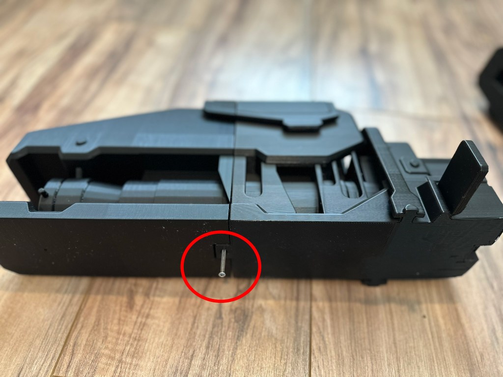 22. Place the 2 sections together and start screwing in the 3 screws shown. (There is a screw on the opposite side not shown in the picture).